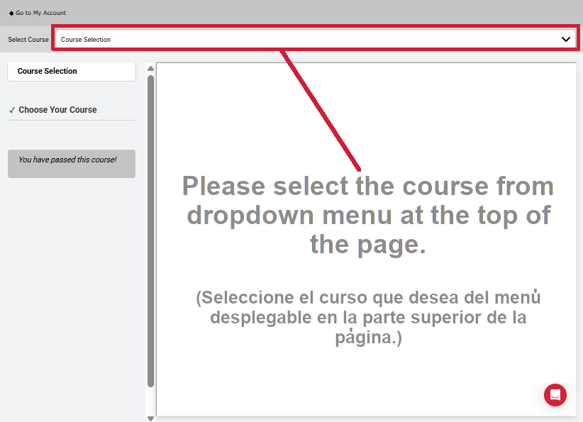 After you open your course, you can select the course language from the drop down menu at the top.